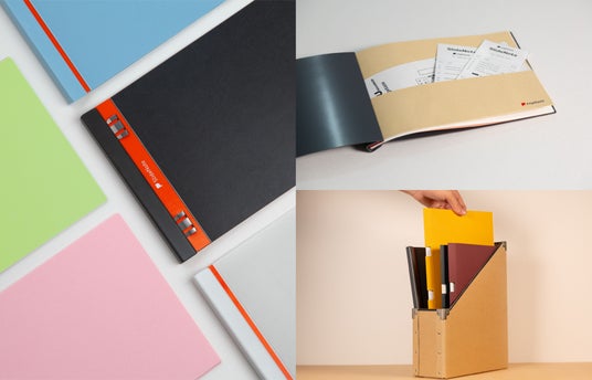SlideNoteに綴じていたノートやプリントを、自宅やオフィスの書棚にテーマごとに保管しておくための紙製バインダーです。SlideNoteにそのままセットできるよう特殊な加工がされており、クリアファイルのように書類の整理に使うことも可能です。付属のスライドクリップを使用することで簡単に用紙を綴じることができます。