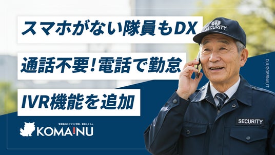 「警備業のバックオフィスを革命する」をミッションとする、株式会社ジャガーノート(東京都渋谷区、代表取締役:平井 智仁 TEL:03-6822-8594)は、当社が提供する警備業向けDXソリューションプラットフォーム「KOMAINU(コマイヌ)」(以下KOMAINU)において、新たに「IVR(自動音声応答)打刻機能」をリリースしました。