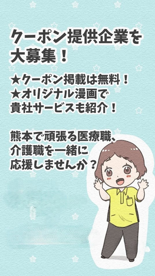 熊本県に特化した転職支援サイト「医療介護マッチングつなぐ」を運営する、株式会社医療経営支援事務所(本社:熊本県中央区、代表取締役:竹森健太)は、2025年6月より、当サイトを利用する医療・介護従事者に向けて、クーポンや特典サービスを無償で提供いただける企業・店舗の募集を開始しました。