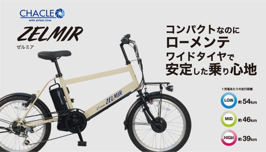 また、発電時には適度な運動負荷がかかり、消費カロリーを表示することで 健康管理にも役立つ のが特長です。小径モデルならではの軽快な取り回しに加え、絶対にパンクしないエアレスタイヤによるローメンテナンス性、そして太陽誘電の回生充電システム「FEREMO」による 超ロングライド性能 を両立。日常の買い物や通勤・通学など、都市部での使い勝手をさらに高めたモデルです。