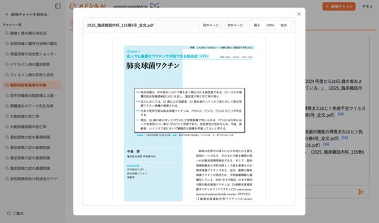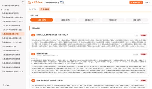1. 信頼できる「南江堂」の医学書データに基づく回答生成:汎用AIとは異なり、参照元を南江堂の医学書に限定しています。回答には必ず「根拠」が紐付いており、インターネット上の不確かな情報が混入することはありません。