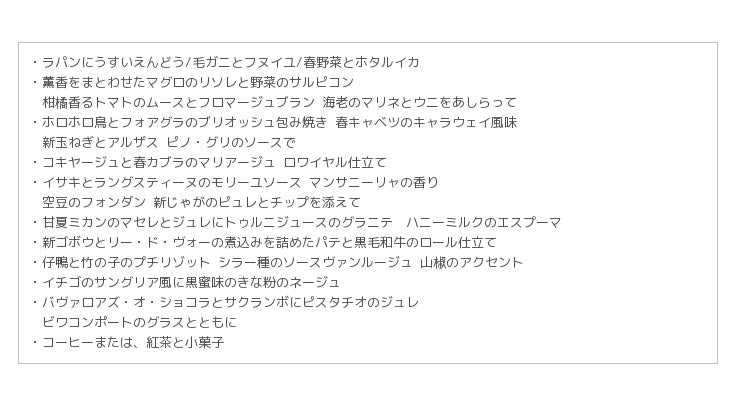 ※仕入れの状況により、食材・メニューが変更する場合がございます。