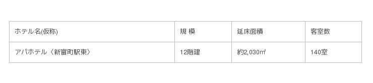 中央区内では、アパホテル〈日本橋浜町駅南〉(全159室)、アパホテル〈八丁堀駅南〉(全135室)、アパホテル〈築地駅南〉(全115室)、アパホテル〈人形町駅北〉(全206室)、アパホテル〈小伝馬町駅前〉(全172室)、アパホテル〈新富町駅前〉(全135室)、アパホテル〈銀座 京橋〉(全170室)、アパホテル〈銀座 宝町〉(全108室)、アパホテル〈東日本橋駅前〉(全219室)の9棟が稼働中であり、本開発プロジェクトの他、計画中である、アパホテル〈新富町駅北〉(平成28年11月29日開業予定・全98室)、アパホテル〈日本橋 馬喰町駅前〉(平成30年3月開業予定・全153室)を含めると中央区内のアパホテルは12棟、総客室数は1,810室となり、中央区内のホテルでは保有棟数・客室数でトップとなる。本案件地では12階建・140室のホテル建設を計画しており、平成29年11月の開業を目指す。案件地の概要は下記の通り。