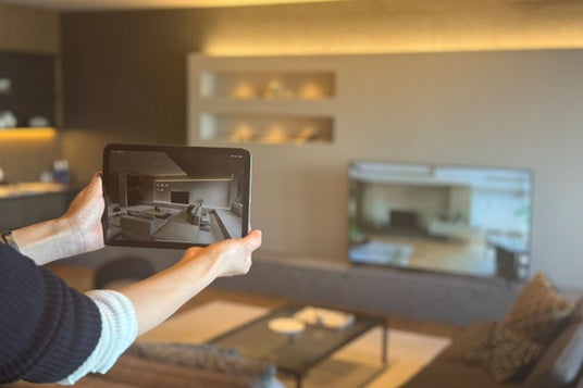 iPadでVR画像をタッチして、素材を切り替え。ショールームと照らし合わせれば、変化をよりリアルに実感できる