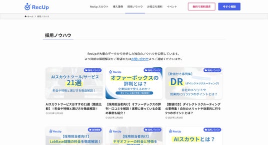 AIスカウトサービス「RecUp(リクアップ)」を展開する、株式会社Delight(本社:東京都、代表取締役:新井崇徳)は、企業の採用担当者向けに情報を発信する採用メディア「RecUp」の立ち上げを行ったことをお知らせします。