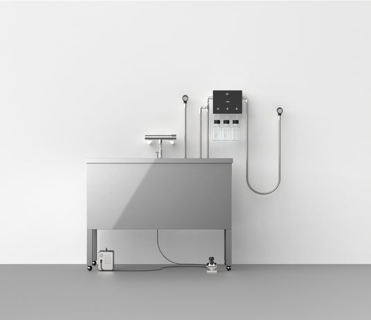 AWATOは電源を使用しない設計です。そのため、コンセントがない場所でも設置が可能。スペースがあれば簡単に取り付け可能です。また、シンク周りに配線が多くなりがちな現場でも、できるだけスッキリとご使用いただけるように設計しました。