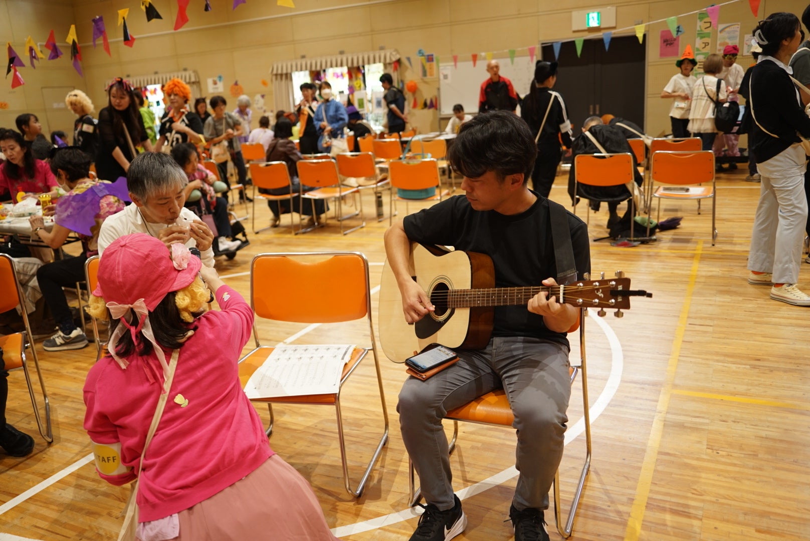 この時間を利用して行われました。仮装がきっかけで、あちらこちで輪が出来ていました。