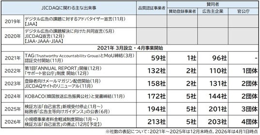 JAA、JAAA、JIAAの広告3団体により2021年3月に設立。JICDAQ認証の検証機関は日本ABC協会。