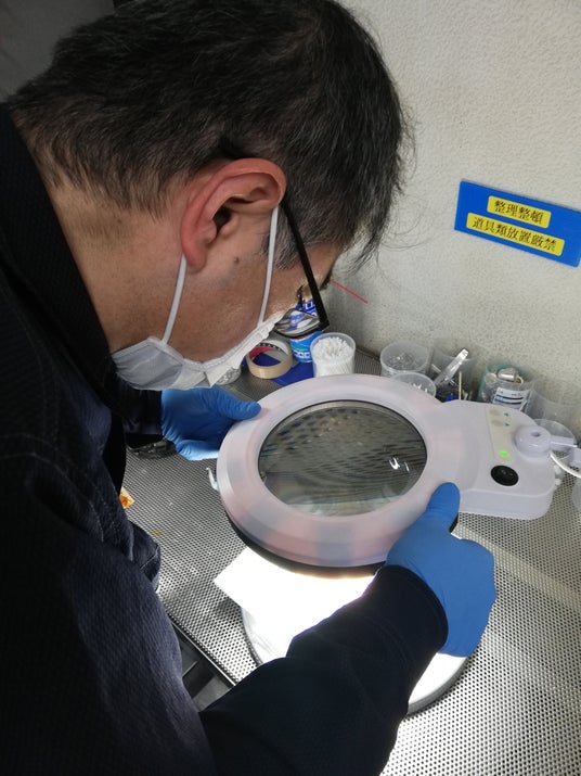 L-FRONTによるシリコンウェハの外観検査(画像内は8インチウェハ)