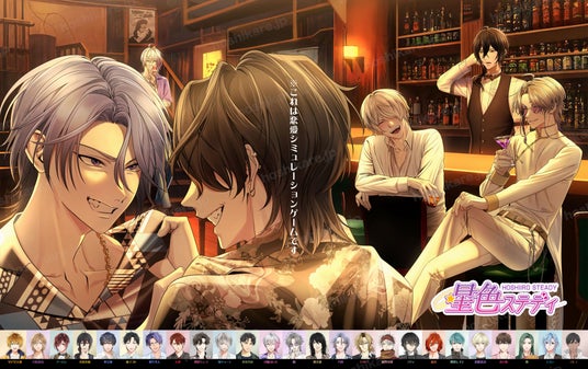 今回リリースされた「星色ステディ」の看板広告には、個性豊かな6人の彼、月輪るいと、氷室蓮、滝リョーマ、浅羽湊輔、乃楽、獏.が登場!
