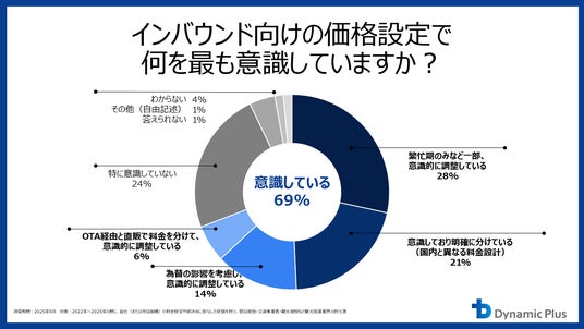 インバウンド向けの価格設定について、「意識している」と回答した企業は全体の69%に上りました。