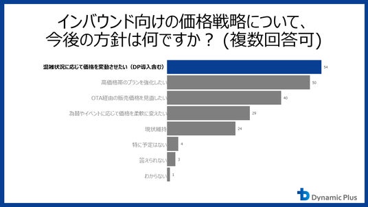 ホテル・宿泊施設向けレベニューマネジメントシステム『D+(ディープラス)』(以下、D+)を提供するダイナミックプラス株式会社(本社:東京都新宿区、代表取締役:平田 英人、以下「ダイナミックプラス」)は、宿泊・交通・観光施設を対象に、インバウンド需要に関する価格戦略の調査を実施いたしました。