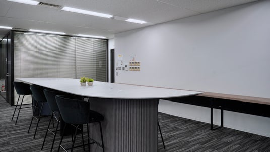 汽水域とは、淡水と海水が混ざり合う中間領域を指す言葉であり、本フロアでは、用途や役割を過度に固定せず、人や思考が自然に交わる状態を空間として表現することを目指しました。明確に区切るのではなく、連続性や余白を持たせることで、状況に応じた多様な使われ方を受け止める構成としています。