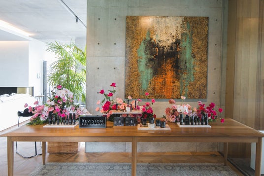 東京・STUMP BASEの会場では、Revision Skincare(R)のラグジュアリーな世界観を象徴するような洗練されたディスプレイが空間を彩り、ブランドの高級感と臨床的な信頼感を同時に感じられる演出に。参加者の皆様には、製品プレゼンテーションの後、展示された新製品を手に取り、その使用感や機能性をご体感いただきました。