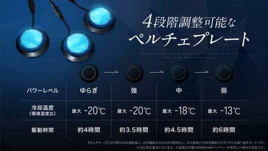 ■【最大−20℃×コンパクトバッテリー】4段階調整で快適さを自在にコントロール