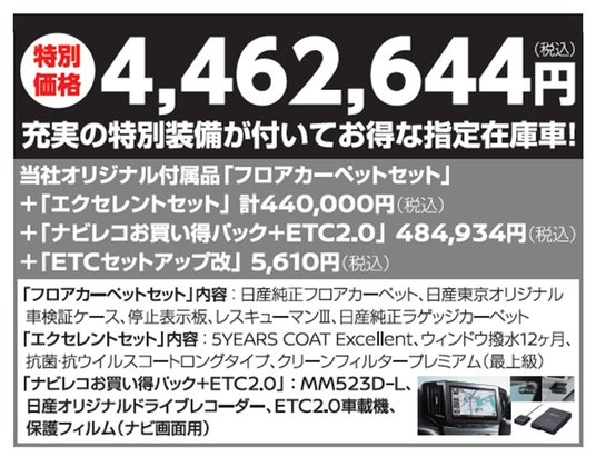この特別なタイミングだからこそ、現行モデルをお得にお求めいただける絶好の機会です。日産東京では、お客様のエルグランドへの興味を後押しするべく、当社指定オプション付き特選車をご用意しており、最大77万円の値引きを実現したエルグランドをご案内可能です。