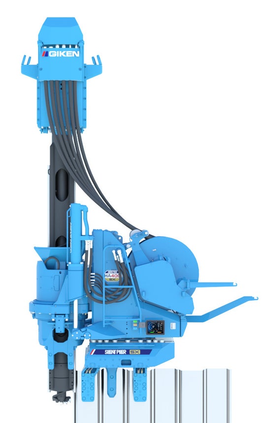 本シリーズの第一弾として、U形鋼⽮板400 mm幅対応機「サイレントパイラー(TM) ST400SX」を来春より発売開始します。あわせて、動力源となるバッテリー式電動パワーユニット「MUB150」も発売。まずは主力のU形鋼⽮板400 mm幅対応機から着手し、来夏には硬質地盤対応の複合機「サイレントパイラー(TM) HA400SX」の発売を予定しています。今後、多様な杭材や地盤・制約条件に応じた機種を順次展開します。