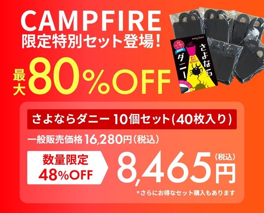 家族にやさしいダニ対策ブランド「さよならダニー」を販売する株式会社スマイルコミュニケーションズ(東京都渋谷区)では、8月2日(土)からクラウドファンディング「CAMPFIRE」において、「さよならダニー」をお得に購入できるプロジェクトを実施中です。