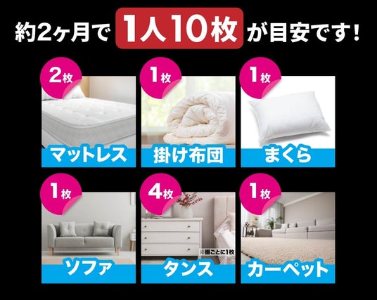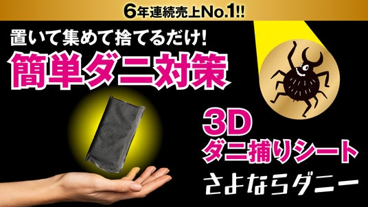 2018年の発売から、置くだけで生きたダニをしっかりキャッチできる手軽さと実感力で多くのお客様に支持され、6年連続売上NO.1。シリーズ累計2300万枚を突破し、ダニ商材市場の拡大を牽引し続ける商品です。