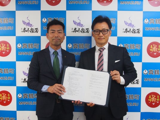 神奈川県真鶴町町長 小林 伸行(右)、株式会社環境フレンドリーホールディングス 代表取締役社長 車 陸昭(左)