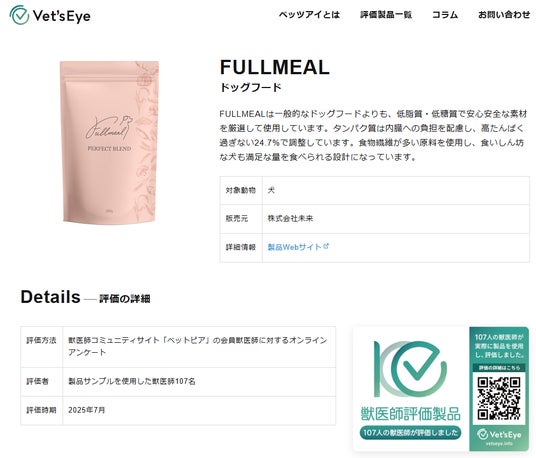本製品も、107名の獣医師による評価データを公開しています。