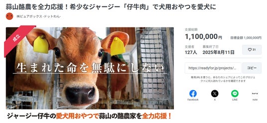 株式会社ピュアボックス(所在地:岡山県岡山市、代表取締役:淺沼悟)が展開するドッグフードブランド「ドットわん」(以下、ドットわん)は、2025年6月13日(金)からスタートしたクラウドファンディングを通じ、岡山県蒜山(ひるぜん)地域の酪農家支援プロジェクトの目標金額を達成いたしました。