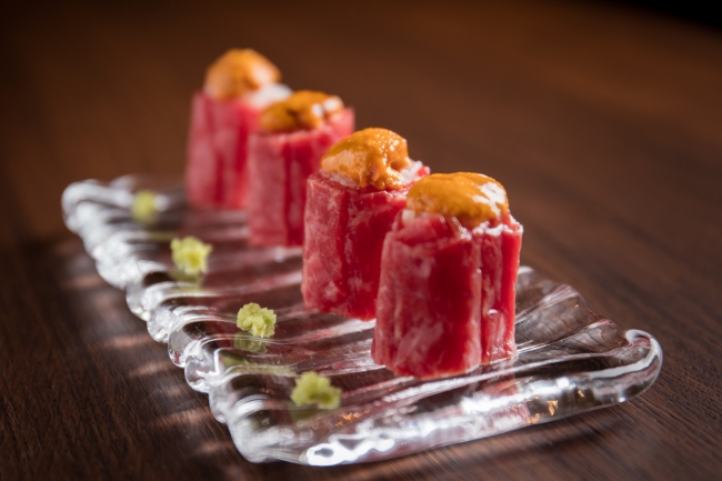 雲丹の甘味と肉の旨味が絶妙に調和したロール寿司です