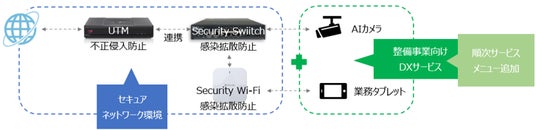 そこでこのような現状を少しでも改善すべく、セキュリティ機器による侵入防止・拡散防止・流出防止を施したセキュアな光回線とオートバックスの店舗運営経験をもとに開発された整備事業者向けの業務支援やCX向上に繋がるサービスをセットにし、サブスクリプションサービスとして提供開始します。