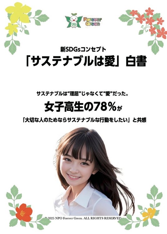 特定非営利活動法人フォーエヴァーグリーン(東京都渋谷区、理事長:渡邊圭)は、東京都内の女子高校生を対象に実施した「サステナブルと愛に関する意識調査」の結果に基づき、「サステナブルは愛 白書」を開公いたします。本白書は、「サステナブル=地球や次世代のための感性に合った「サステナブル=愛する人のため」という欧米型の啓発手法に対し、日本人」という新たな視点を提示するものです。