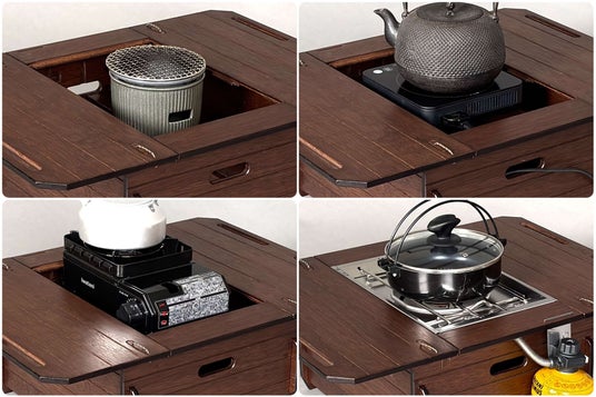 本商品は、工具不要でわずか1分で組み立て可能。囲炉裏・テーブル・収納・丸洗い洗浄を一体化した唯一無二の構造美を備え、インテリアからキャンプ、庭バーベキューまで幅広く活躍します。
