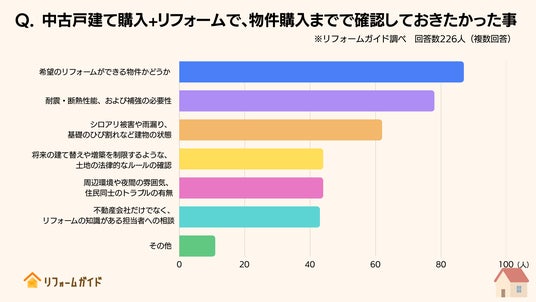 物件購入までで確認しておきたかった事、1位は「希望のリフォームができる物件かどうか」