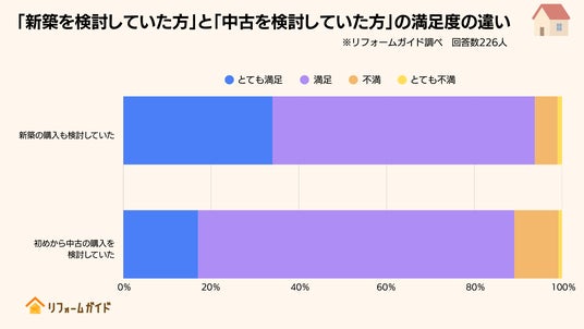 特に注目されるのは、もともと新築の購入を検討していた方のほうが、そうでない方と比べて満足度が高かった点です。
