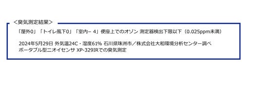 この無臭化装置を取り付けた「感染予防型 仮設トイレ」は2024年5月に行われた臭気調査で無臭が確認されています。
