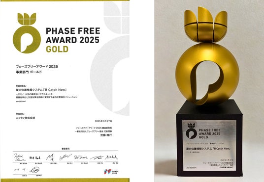総合防災のニッタン株式会社(本社:東京都渋谷区、代表取締役社長:沖昌徳)は、屋内位置情報システム「B Catch Now(ビーキャッチナウ)」が、一般社団法人フェーズフリー協会主催「PHASE FREE AWARD 2025」において、事業部門最高位のGOLD賞を受賞したことをお知らせいたします。