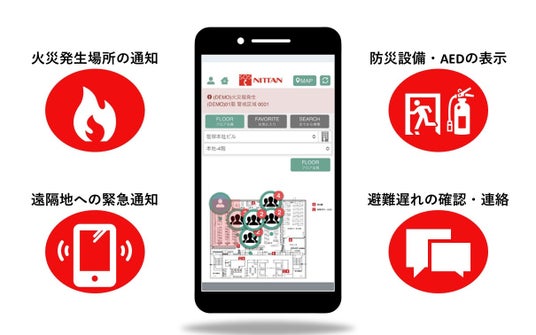 建物内の人の位置や、火災・防災設備の場所を可視化し、"より安全に" "より迅速な" 避難をサポートするDXサービスです。さらに、平時にも利用できる多様な機能も備えることで、災害時と平時の境目をなくし、新たな価値を提供します。