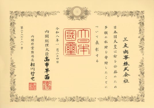 三友商事株式会社(本社:大阪市中央区、代表取締役:大門正義)は、社会福祉施設や災害関連現場等へのオゾン除菌脱臭機「AIR BUSTER(エアバスター)」の寄贈活動が評価され、この度、紺綬褒章を受章いたしました。