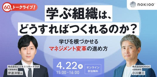 「組織内での学びのカルチャー」と「マネジメント変革」をテーマに、学びを現場の成果や組織変革にどうつなげていくのかを、さらに深掘りする公開イベントを4月22日(水)に開催します。