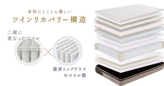 100万円クラスの高級マットレスと同等の構造を、Limne独自の設計で再現する為、ツインリカバリー構造(二層ポケットコイル)を採用。