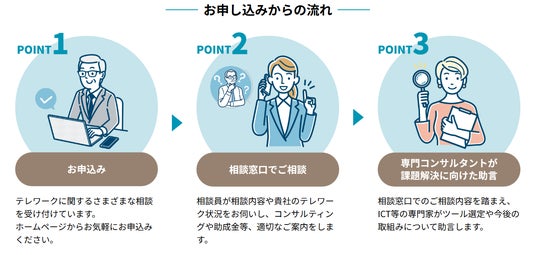テレワークトータルサポート事業の相談窓口では、相談員が相談内容や貴社のテレワーク状況をお伺いします。