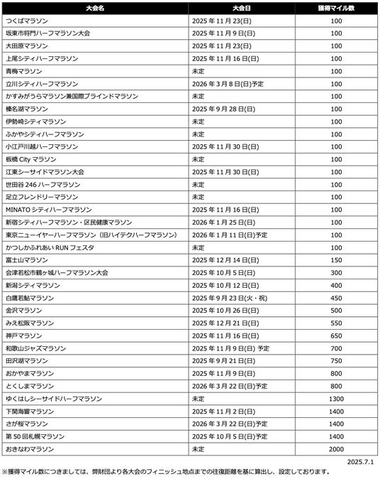 ※マイル獲得には、対象大会への参加と現地マイルステーションでの会員証タッチが必要です。