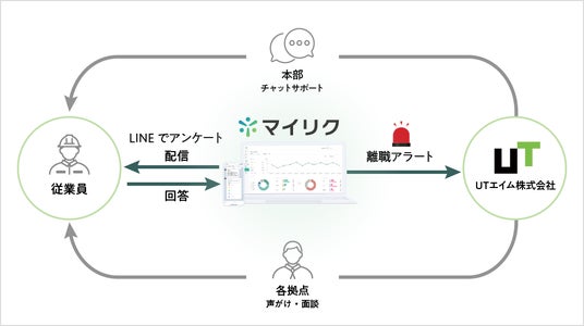 定着支援ツール『マイリク』(https://myric.jp/ma/haken/)が、大手派遣会社のUTエイム株式会社(本社:東京都品川区、代表取締役社長:筑井信行)に導入され、製造現場で働く従業員の方々を対象に運用を開始しました。