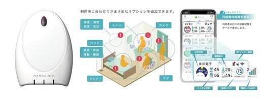 本研究では、非装着型センシングデバイス「MAMORUNO」により、次の健康データを取得・分析します:睡眠パターン 呼吸・心拍・体温 動作検知による起立・歩行の評価