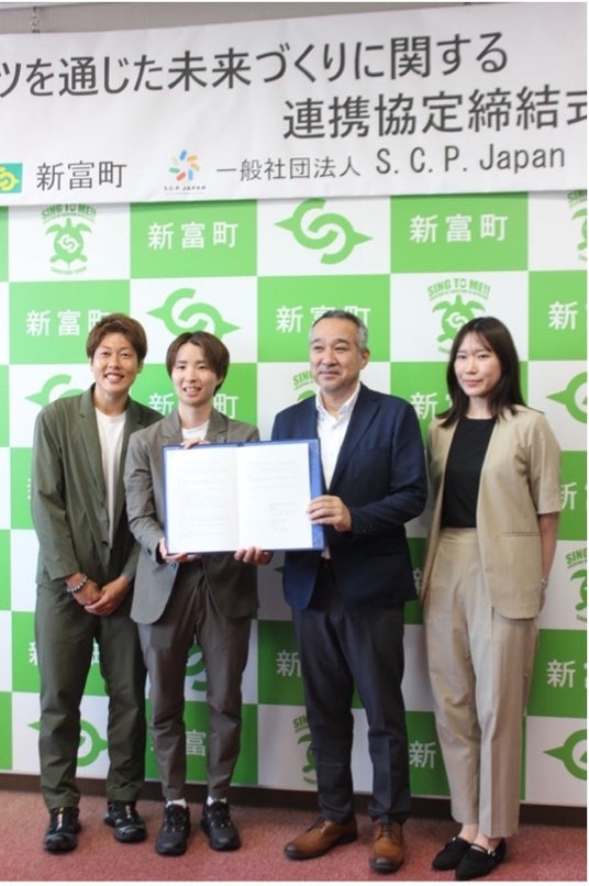 一般社団法人S.C.P. Japan(代表理事:井上由惟子)は、宮崎県新富町(町長:小嶋 崇嗣)と、スポーツを通じた地域活性化および青少年の健全育成を目的とした連携協定を締結しました。