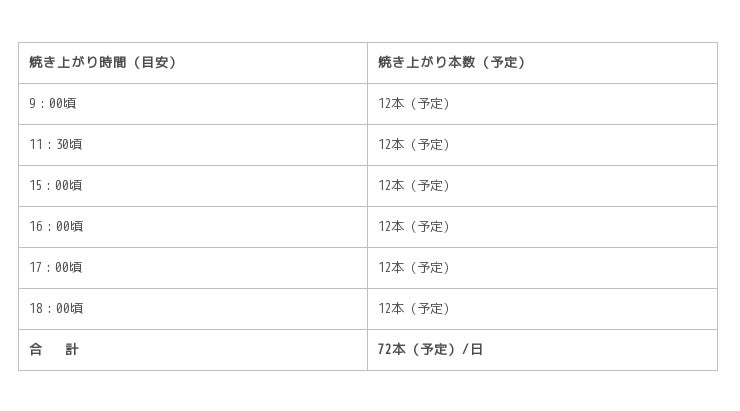 <焼きたて「MIYABI」焼き上がり時間と販売本数の目安>