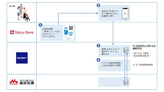 本サービスは、森永乳業と株式会社東急ストア(代表取締役社長:大堀 左千夫)の会員情報を紐づけ、当該会員の購買データを森永乳業に提供するものです。