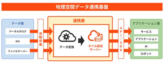 「地理空間データ連携基盤」の全体構成を示したアーキテクチャ図