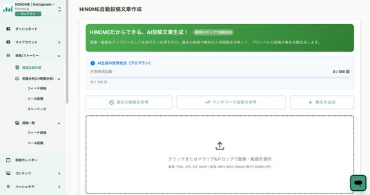 利用方法:HINOMEにご登録・ログイン後、分析画面の[投稿・ストーリー]→[投稿文章作成]からご利用いただけます。