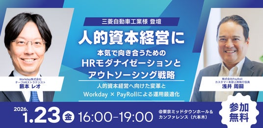 株式会社ペイロール(本社:東京都江東区、代表取締役社長:湯浅哲哉、以下:ペイロール)は、2026年1月23日(金)にセミナー「人的資本経営に本気で向き合うためのHRモダナイゼーションとアウトソーシング戦略」(参加費無料)をワークデイ株式会社(以下:ワークデイ)と共催いたします。