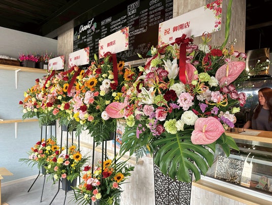 祝花の一例です。開店を華々しく彩るお花をご用意しています。