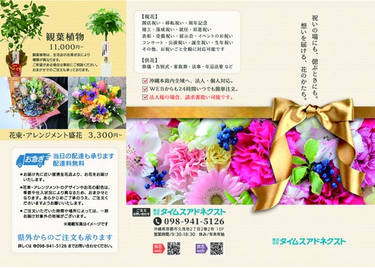 ※タイムスアドネクストでは、県内各地での、ご葬儀への供花手配も行っています。